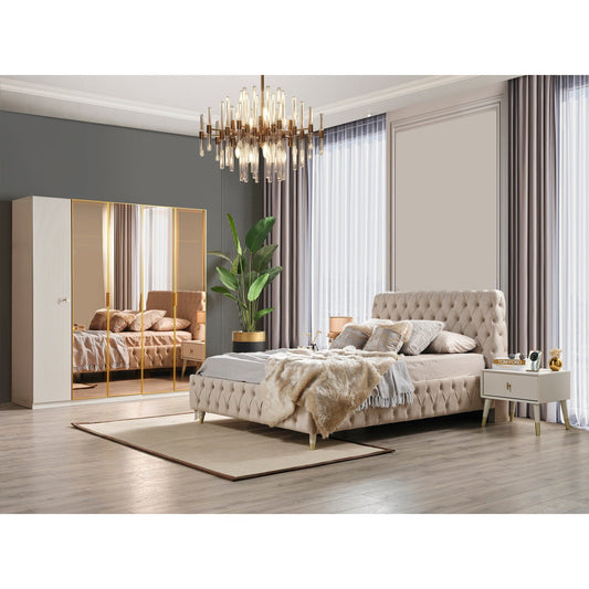 Gold Sovrumsset (160 cm Säng-2st Sängbord-Sminkbord-Spegel-Garderob)