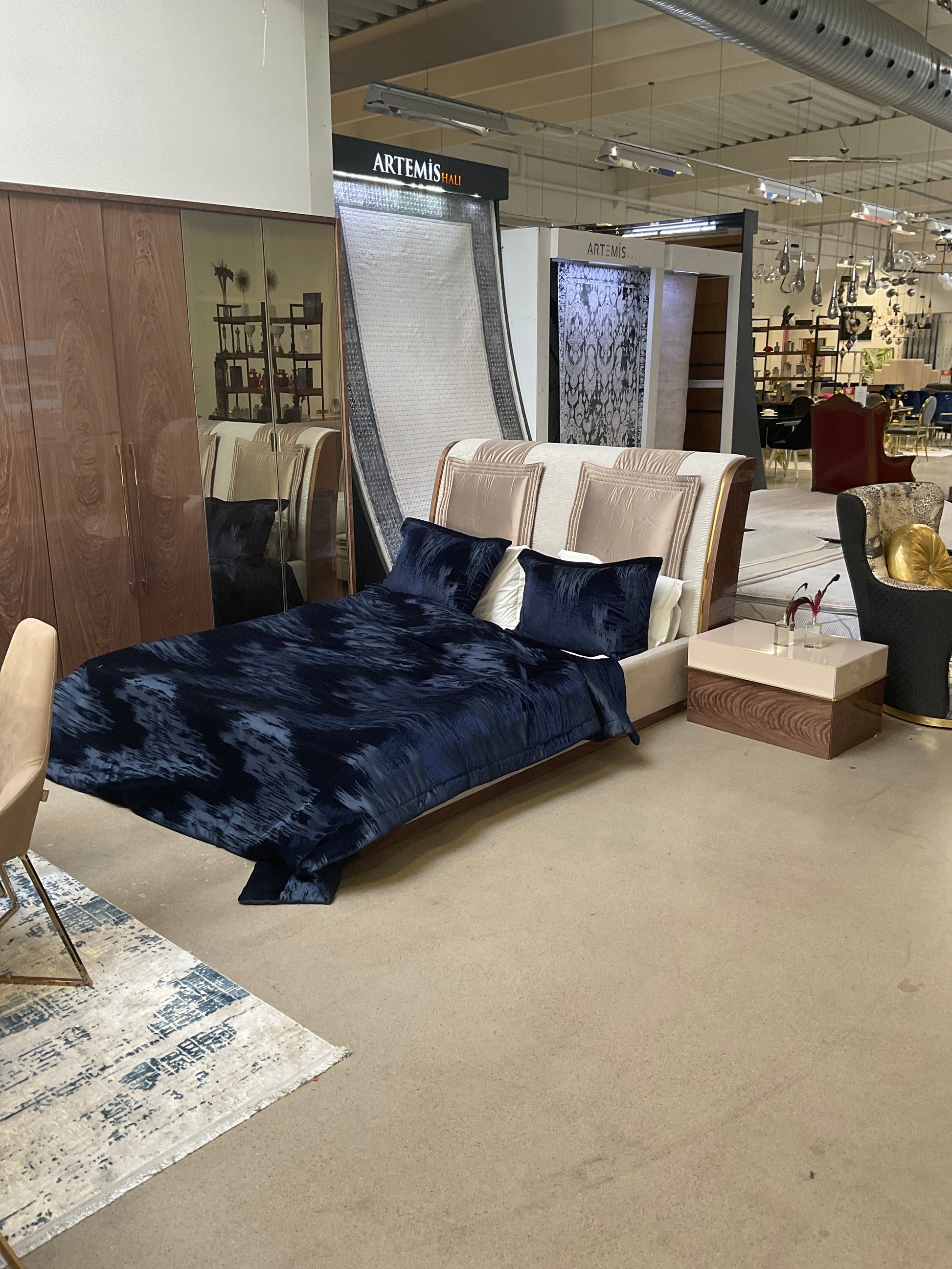 Aura Sovrumsset- Säng 160x200 cm, Sängbord, Sminkbord utan Spegel, Garderob (6 Dörrar)