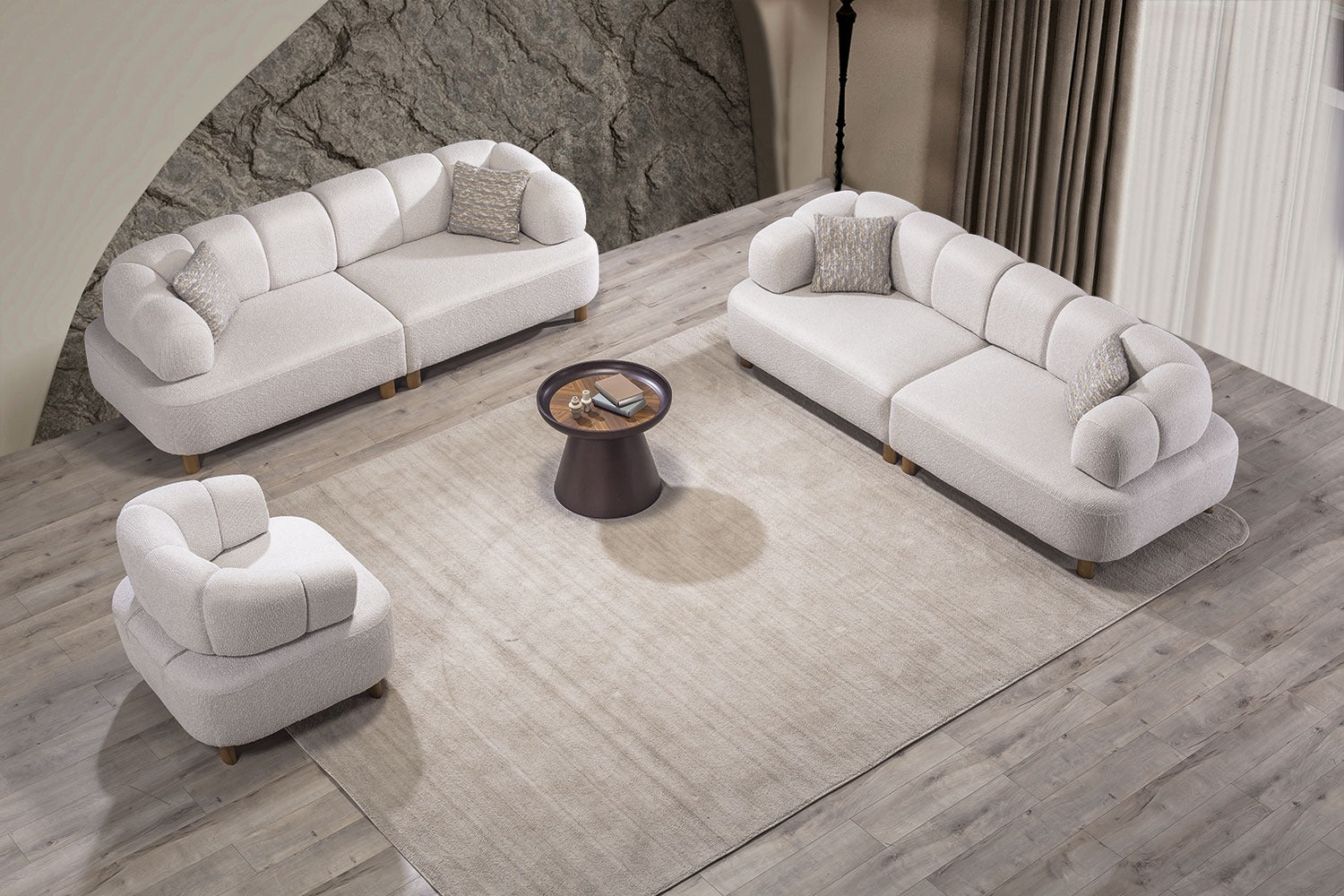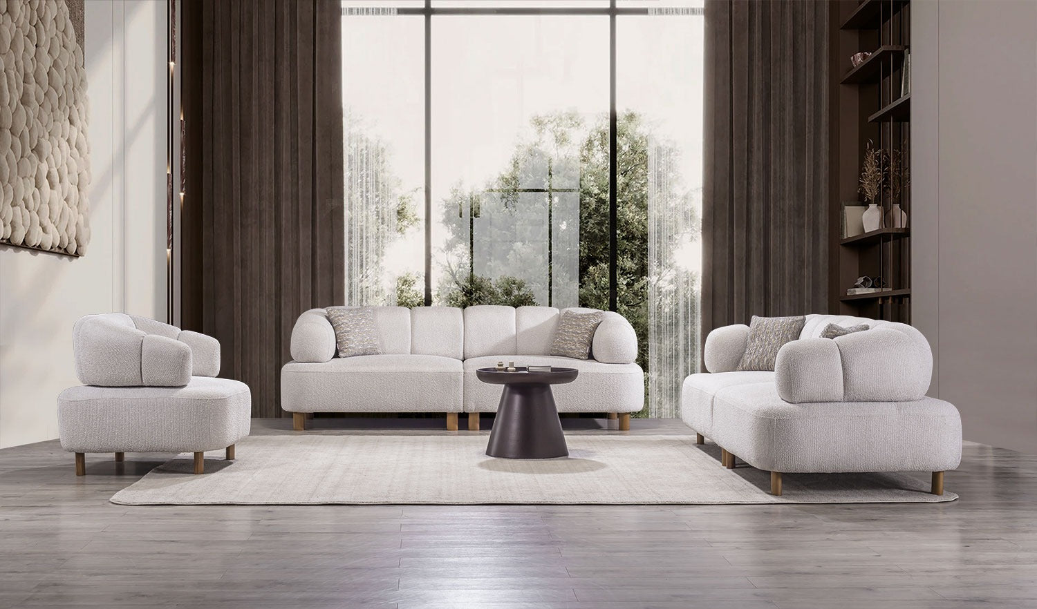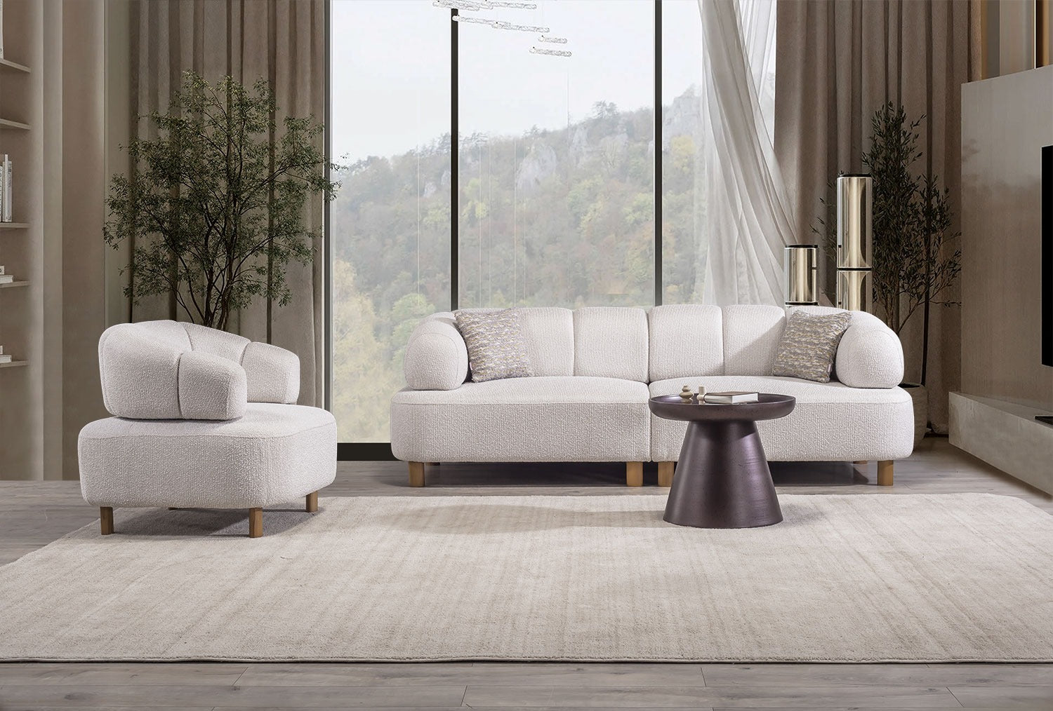 Avva-B soffgrupp kombinerar modern design med en mjuk och inbjudande känsla. De rena linjerna och de harmoniska proportionerna gör att soffan passar perfekt i både stilrena och mer klassiska vardagsrum. Den generösa sittytan och den balanserade formen skapar en plats där komfort och estetik möts på ett naturligt sätt.