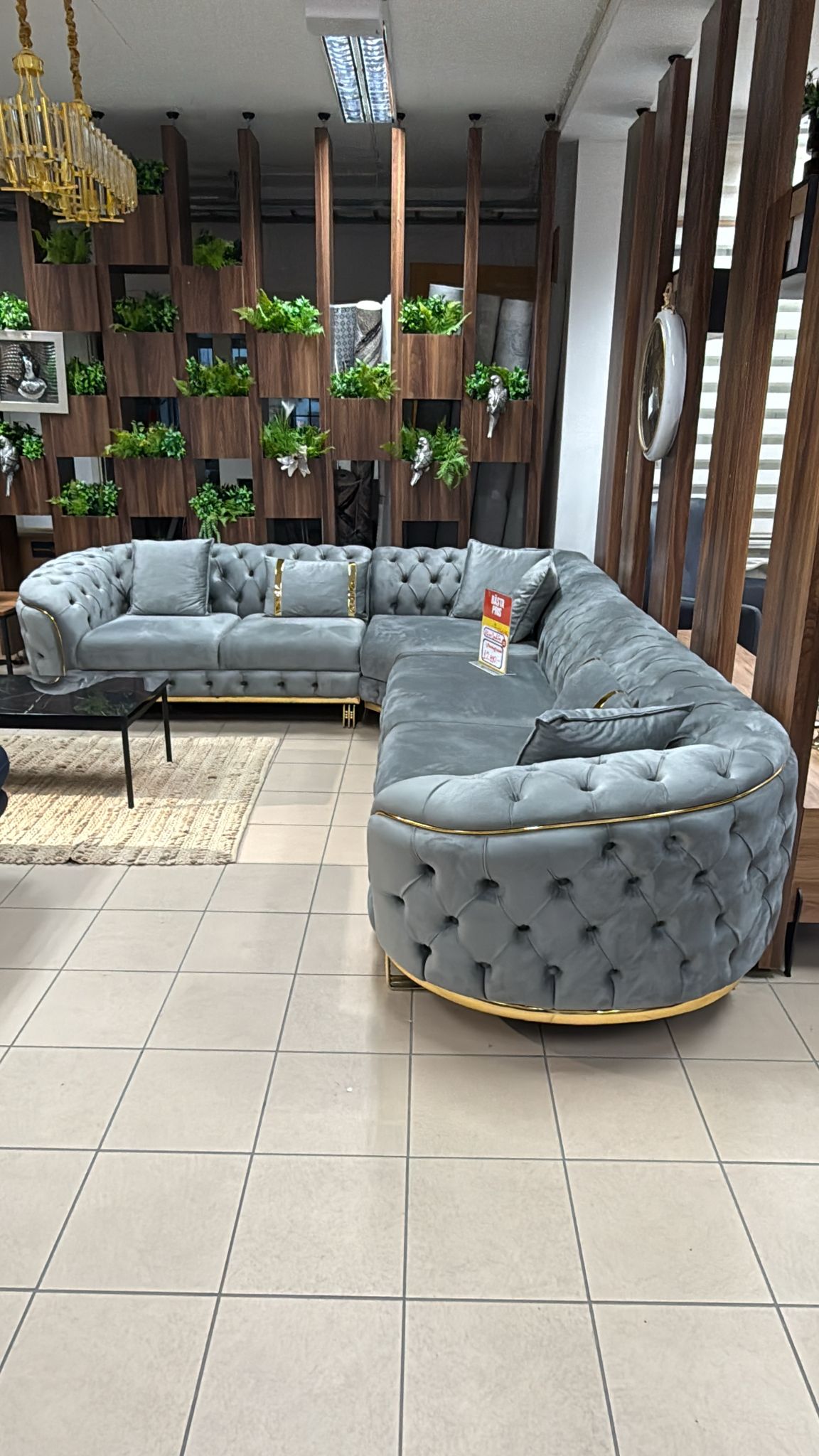 Gloria Hörnsoffa - Grå med Guld Ben