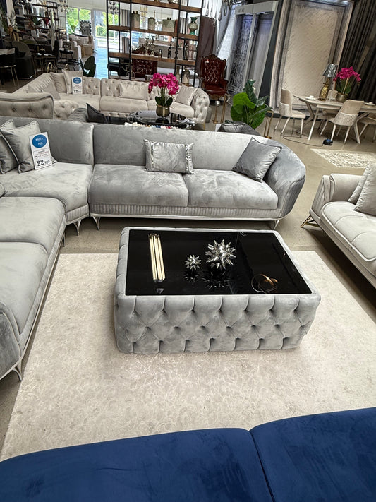 Cinar 4+1 Soffbord - Spegel med Silver Ben