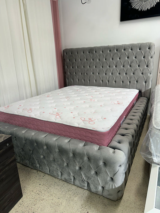 Jasmin Säng med Madrass Ljusgrå - 160x200 cm