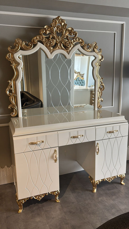 Sminkbord - Vit med Guld Detaljer
