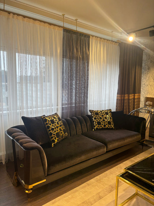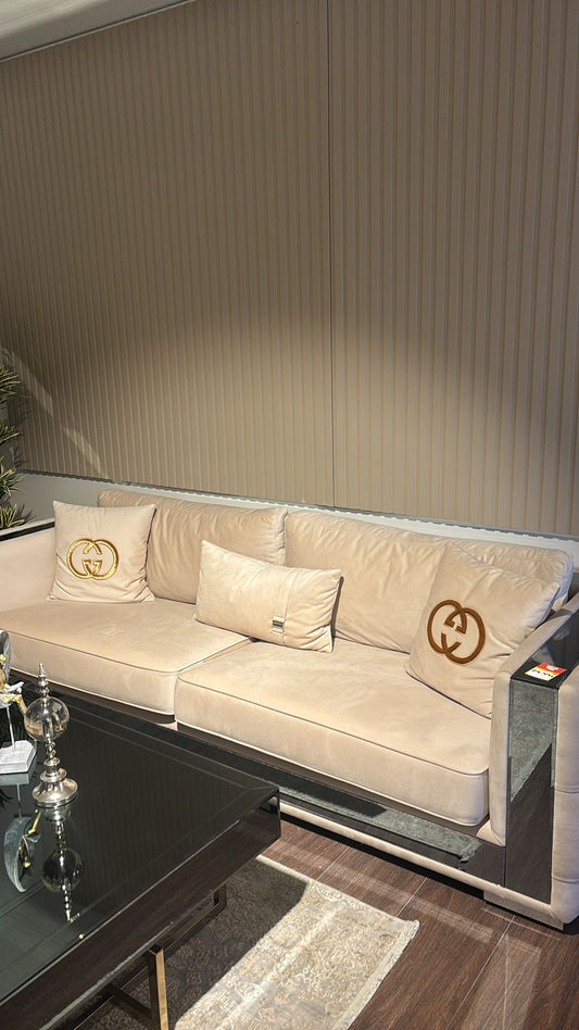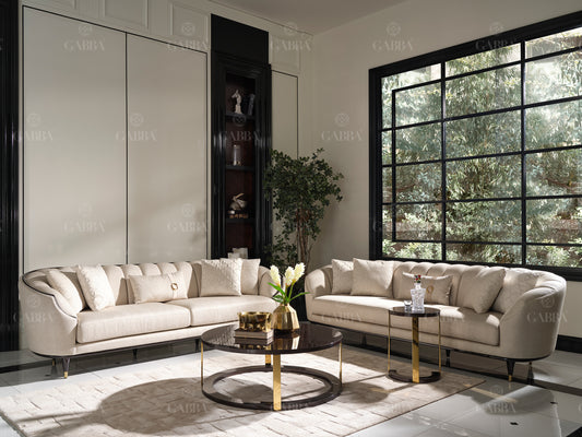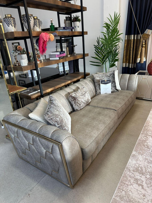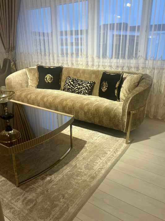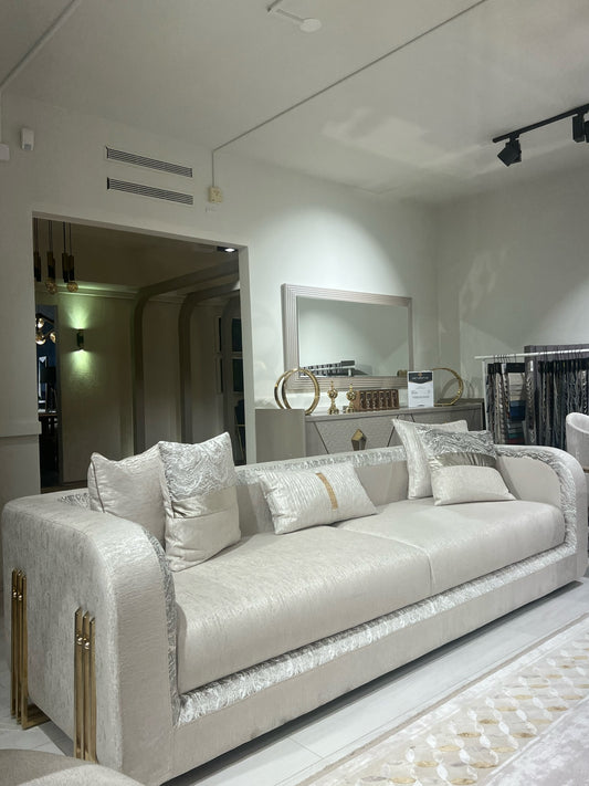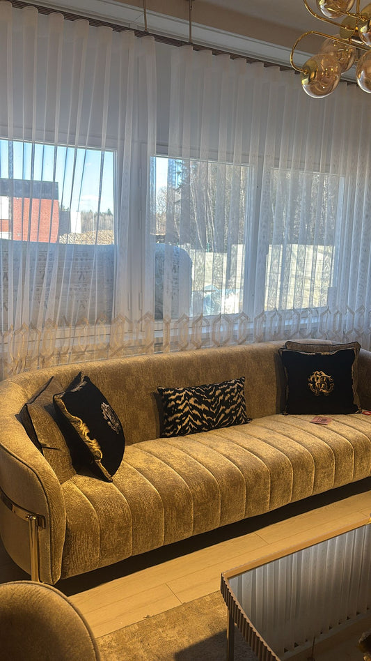 Verona 3+3+1 Soffgrupp - Beige med Guld Ben