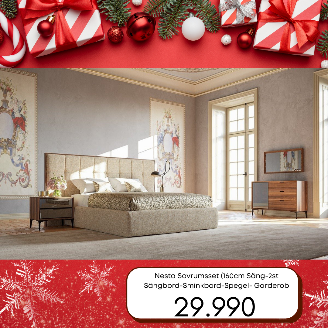 Nesta Sovrumsset - (160cm Säng-2st Sängbord-Sminkbord-Spegel-5-dörrars Garderob)