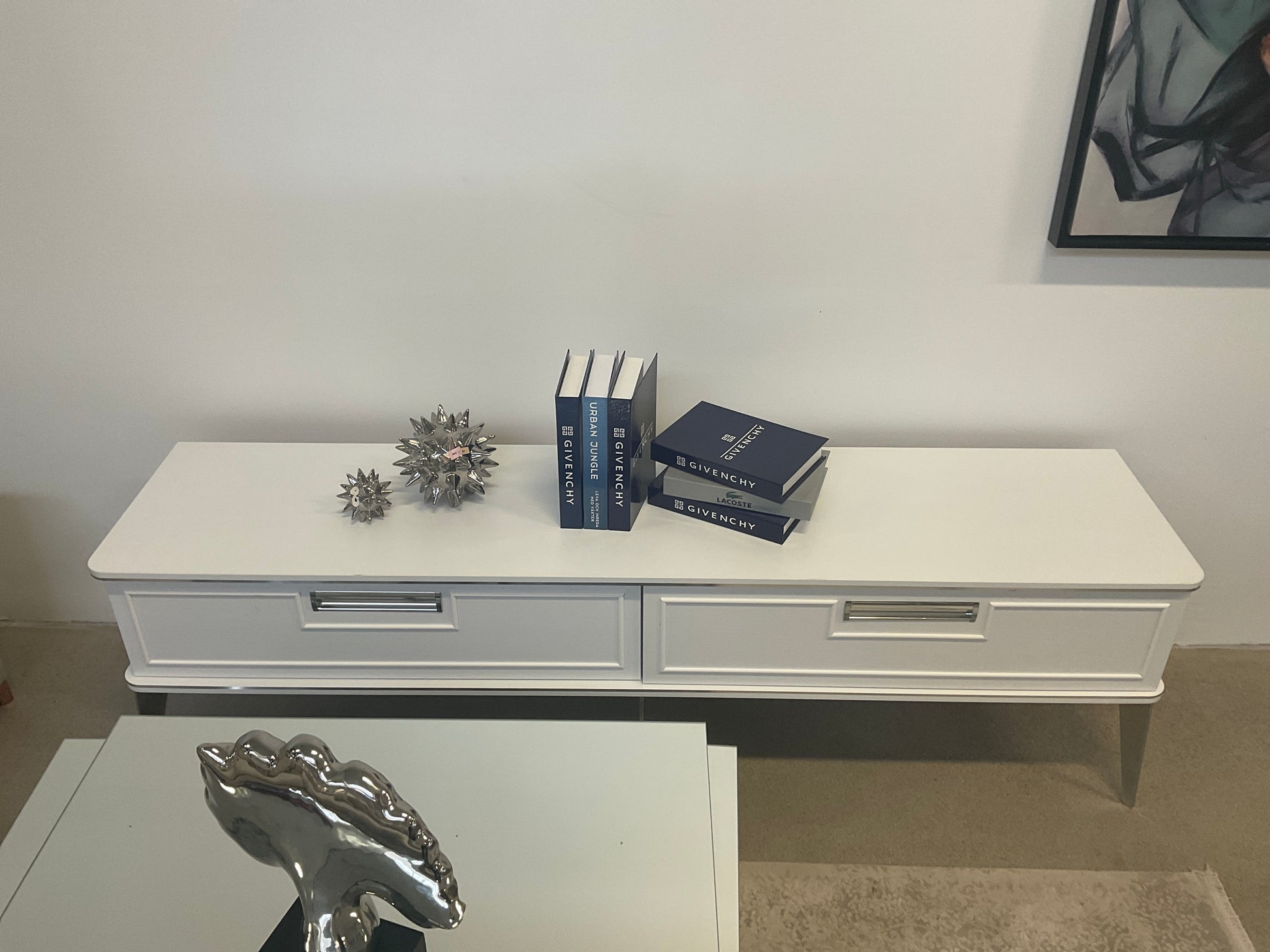Tv Bänk - Vit med Silver Ben