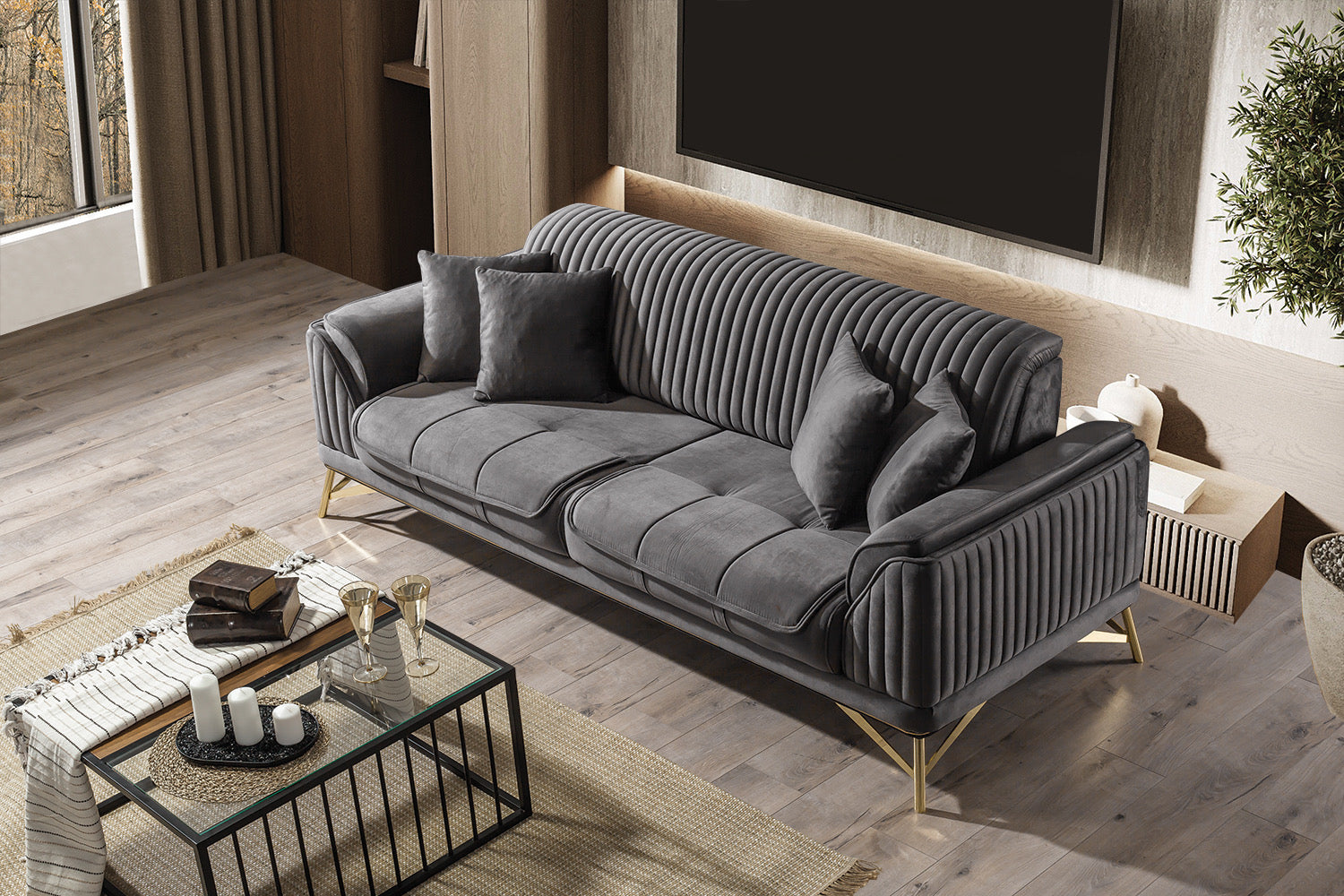 Magnum Soffgrupp är den perfekta möbeln för att skapa en bekväm och stilfull soffgrupp i ditt vardagsrum. Denna soffgrupp har en modern och elegant design som ger extra lyx till din inredning. Välj mellan olika storlekar och färger för att hitta den Magnum Soffgrupp som passar dig och ditt hem. Om färgen eller materialet som du önskar inte finns med på hemsidan vänligen kontakta kundtjänst på Kundservice@LineFurniture.se OBS! Uppfattning av nyansen kan skilja sig åt några få procent då det påverkas av skärmbild, skärmkvalité, ljusinställningar, ljussättning där produkten placeras och period av tillverkning av tyget.
