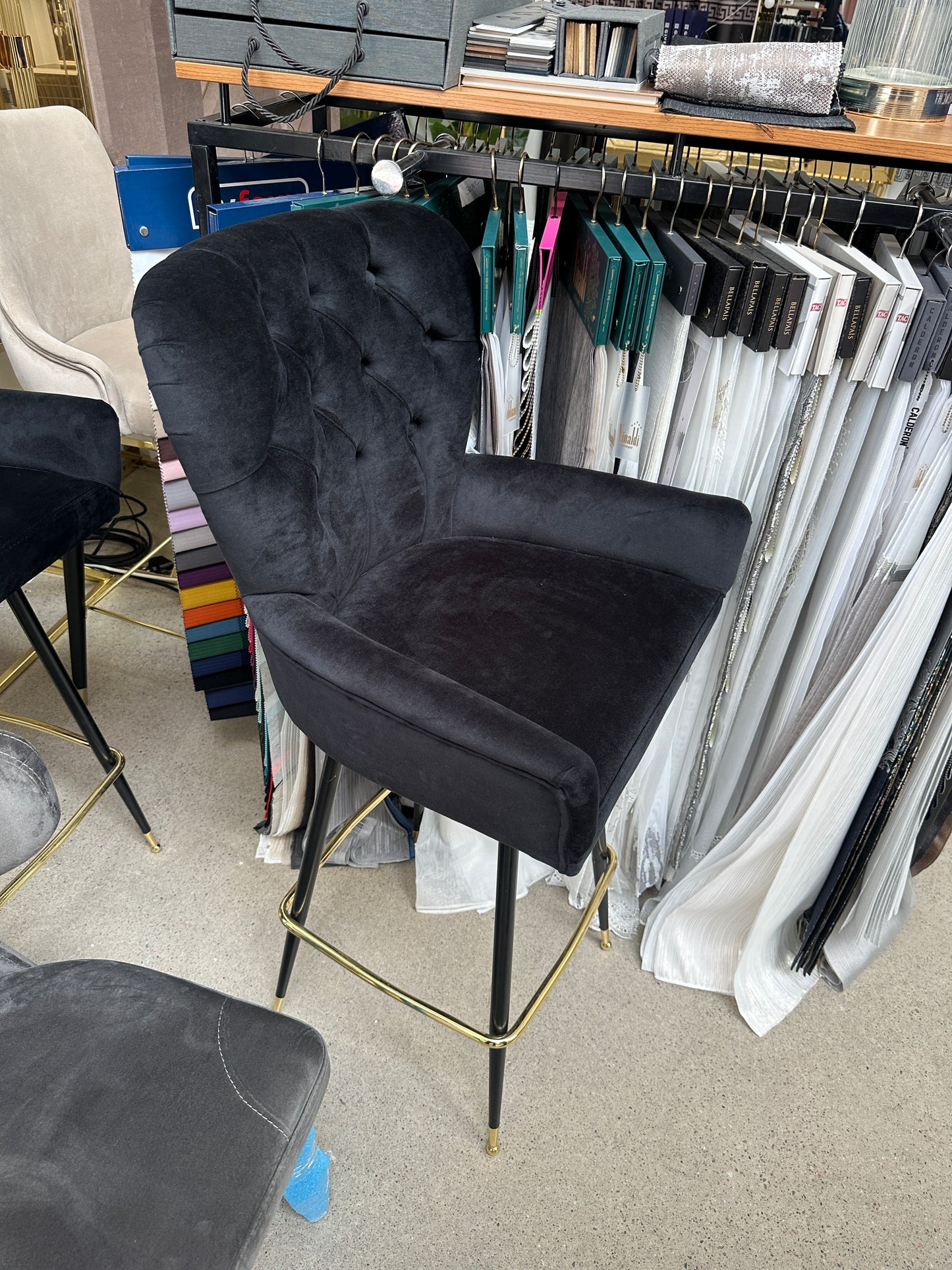 Barstol Svart med Guld Ben