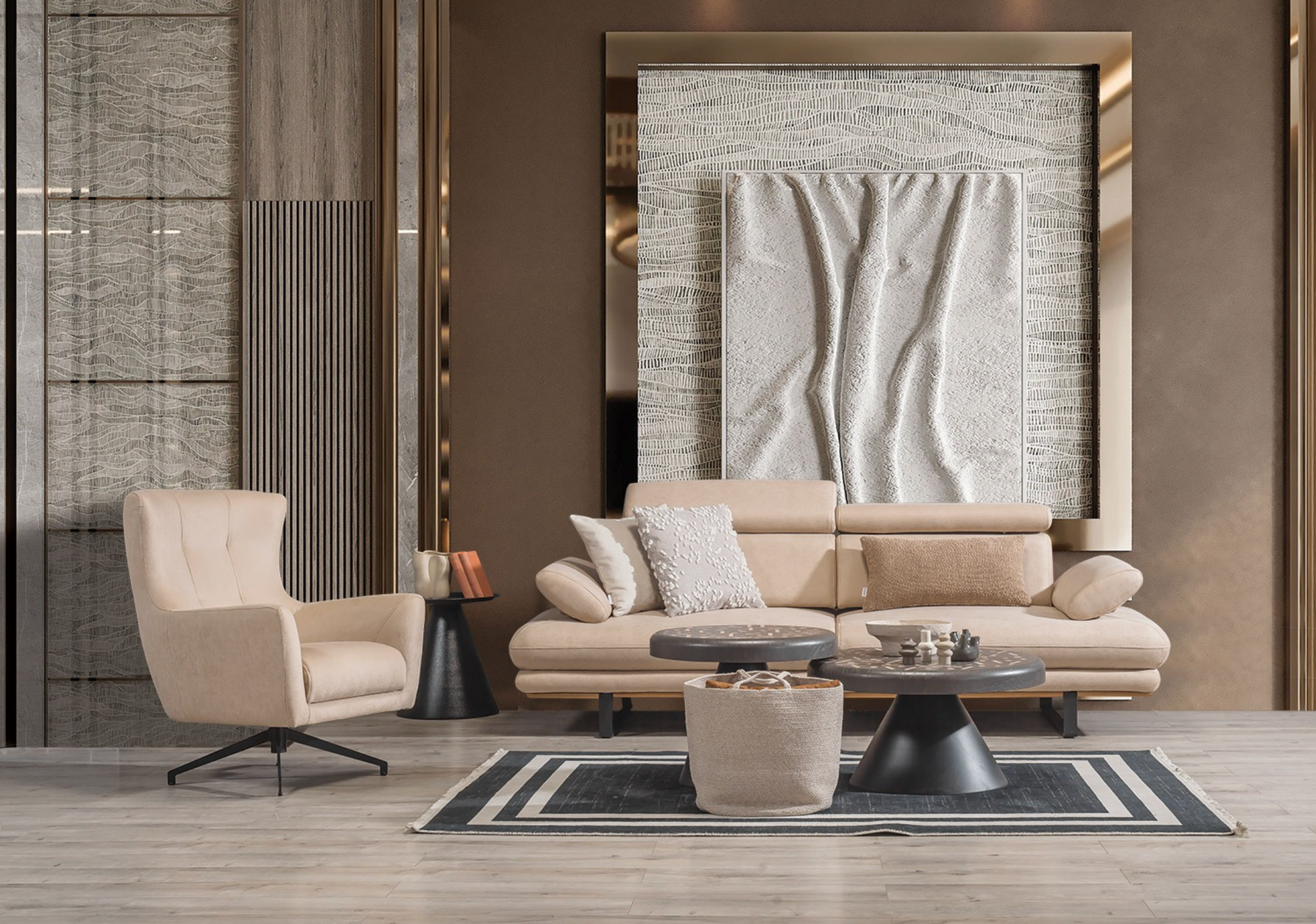 Soffgrupp - Stil, Komfort och Funktion i Perfekt Harmoni Upptäck vår senaste soffgruppskollektion – en perfekt kombination av modern design, tidlös elegans och oslagbar komfort. Den här soffgruppen är skapad för att vara hemmets naturliga mittpunkt, där stil möter funktion och där varje detalj är genomtänkt för att ge dig en lyxig känsla varje dag. Med sina rena linjer, trendiga silhuett och noggrant utvalda material passar soffgruppen lika bra i en minimalistisk som i en klassisk inredning. Den moderna färgpaletten – från varma jordtoner till svala grå nyanser – gör det enkelt att matcha med din personliga stil. Tack vare de generöst tilltagna sittdynorna och det mjuka, slitstarka tyget bjuder soffgruppen in till långa kvällar med familj och vänner. Den ergonomiska designen ger optimalt stöd för rygg och nacke, vilket gör att du kan sitta bekvämt i timmar. Soffgruppen är tillverkad med en robust stomme i massivt trä och högkvalitativ stoppning som håller formen över tid. Det är inte bara en möbel – det är en investering i ditt välbefinnande och ditt hem. Med plats för flera personer är den perfekt för både stora vardagsrum och mer kompakta utrymmen, tack vare sin smarta layout. Du kan välja mellan fasta eller modulära delar för att anpassa soffgruppen efter dina behov. Dessutom är soffgruppen enkel att underhålla, vilket gör den idealisk för barnfamiljer eller husdjursägare. Avtagbara överdrag, fläckavvisande material och slitstarka sömmar gör att den håller sig snygg år efter år. Det här är en soffgrupp för dig som vill lyfta din inredning till nästa nivå – utan att kompromissa med komfort. Den speglar de senaste trenderna inom europeisk design, samtidigt som den är byggd för det svenska hemmet. Välj en soffgrupp som inte bara ser fantastisk ut, utan som också gör varje dag hemma lite skönare. Upptäck skillnaden med vår nya kollektion – exklusivt hos Line Furniture.