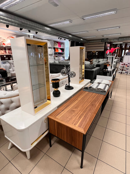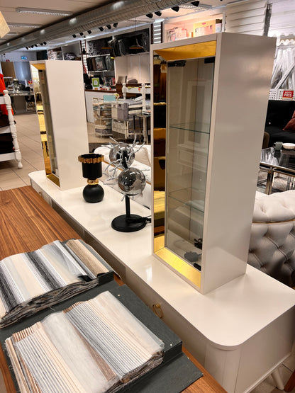 Tv Bänk med Överdelen - Vit med Guld Ben